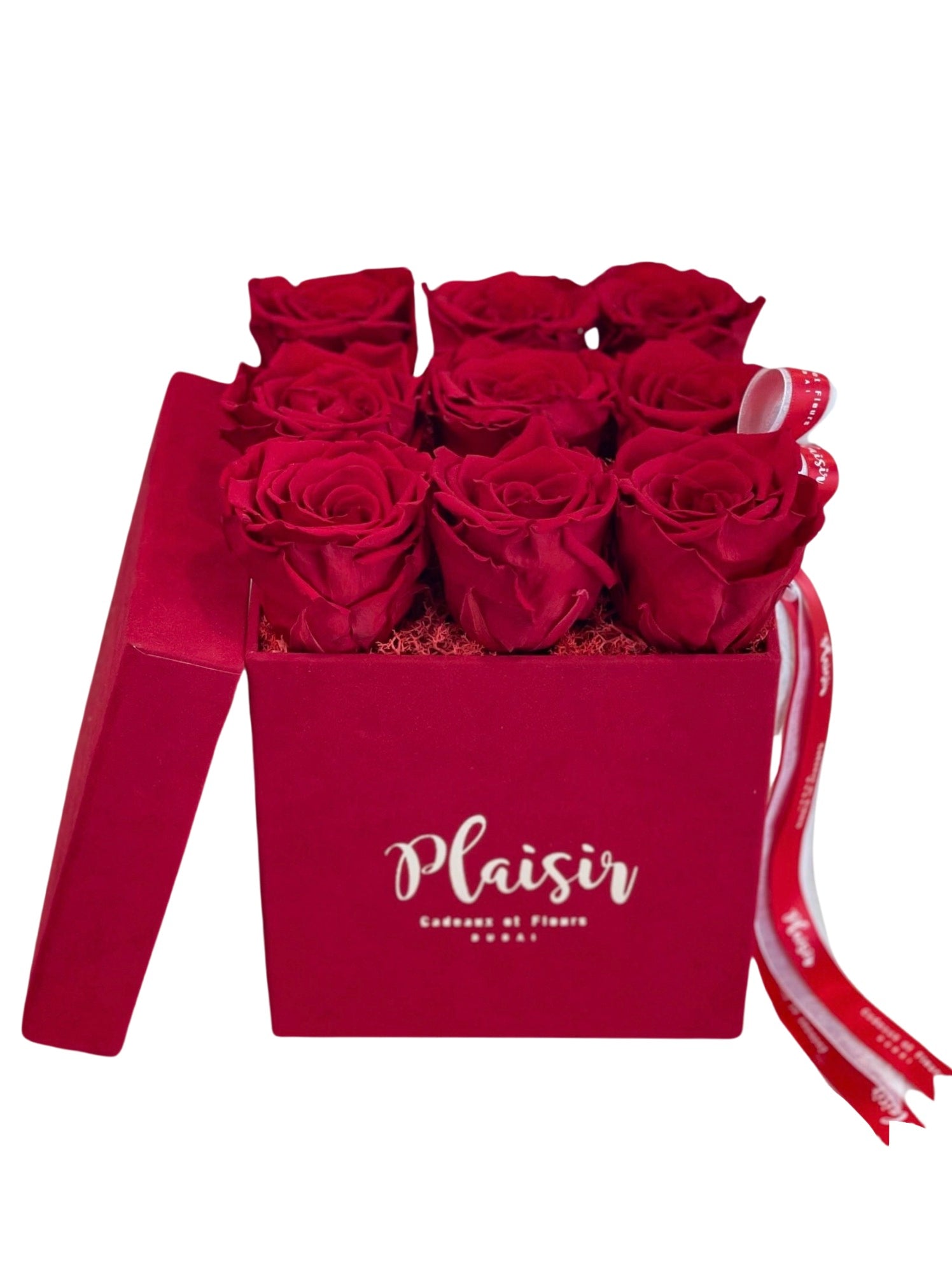 نحن نعلم جميعًا أن اللون الأحمر يرمز إلى الحب، وهذه الورود الحمراء الجميلة وطويلة الأمد في صندوق مخملي أحمر فاخر ستنقل أفضل مشاعرك لإرضاء أي متلقي.
