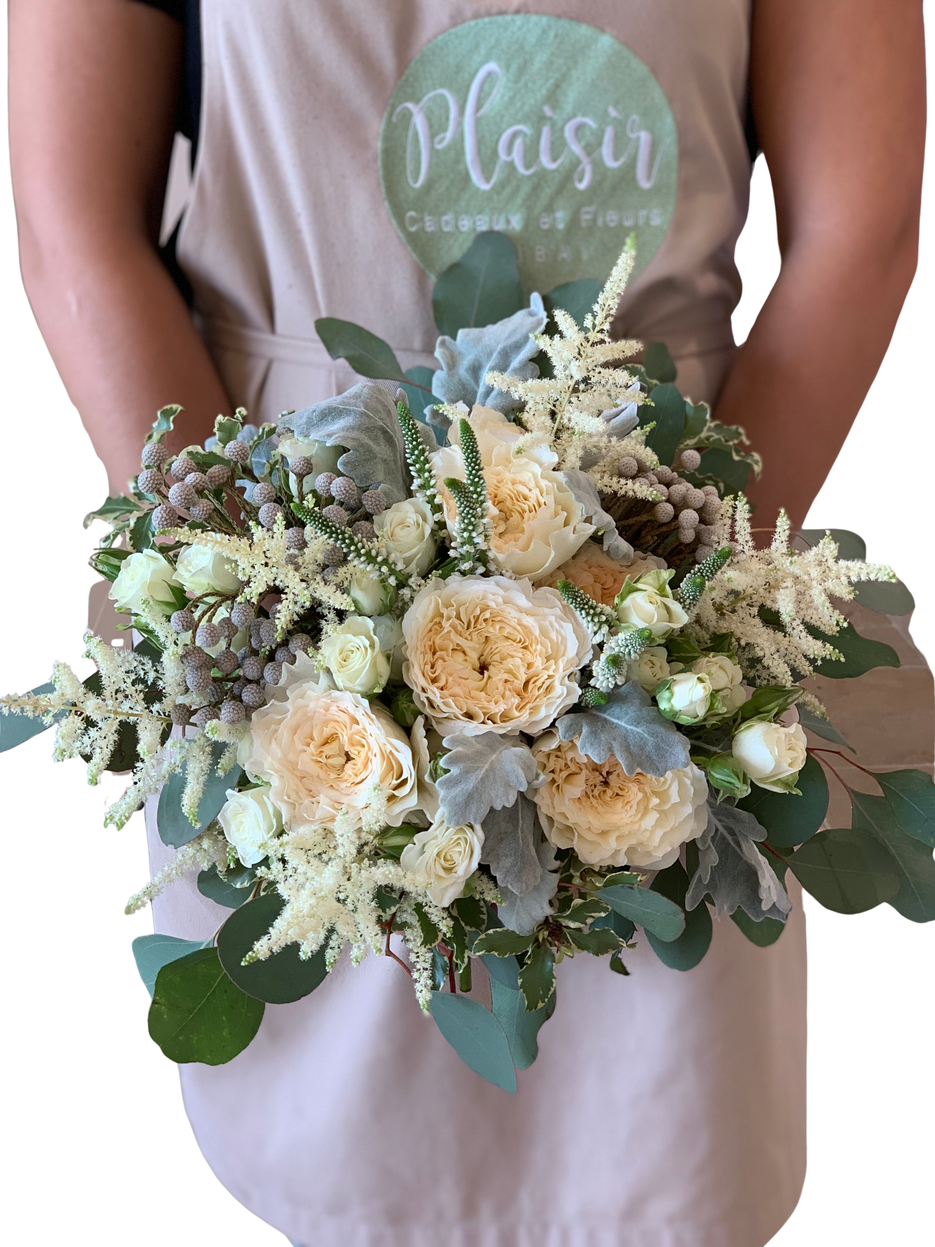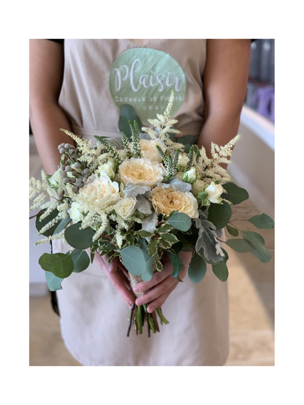 يجب أن تكون باقة زفافك قطعة فريدة تعكس أسلوبك الشخصي ويمكن أن تتضمن عناصر تعكس ما هو خاص وذو معنى بالنسبة لك شخصيًا أو كزوجين. من البرية والريفية، إلى البساطة الخالصة، إلى العظمة المتتالية، يمكن لـ Plaisir Cadeaux et Fleurs أن تأخذ رؤيتك وتحولها إلى حقيقة. نتطلع إلى أن نكون جزءًا من يومك الخاص! للمواعيد، اتصل بنا على +97156 5687373