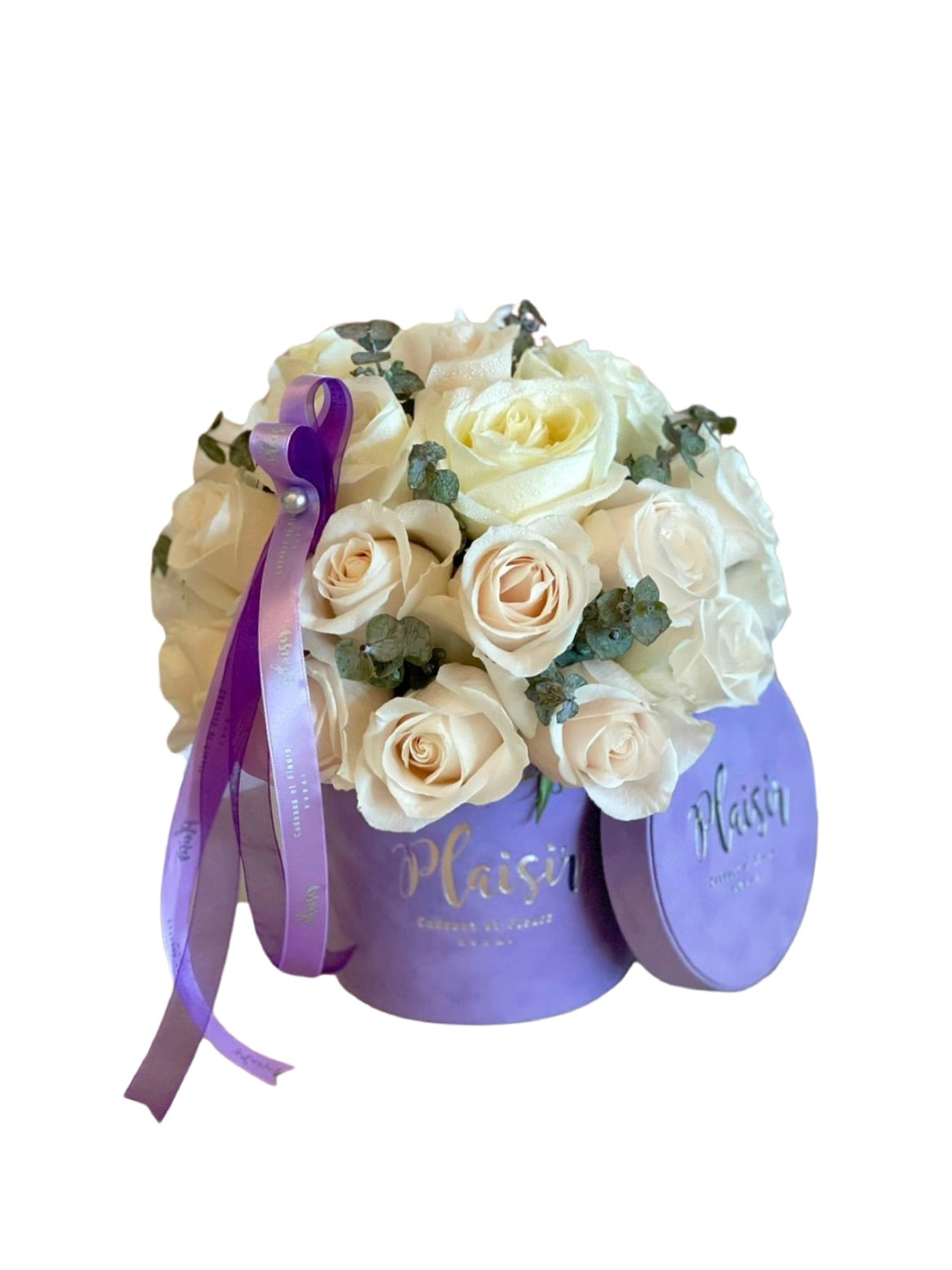 تعتبر قباب الورود المذهلة من Plaisir Cadeaux et Fleurs مع شجر الكينا من التشكيلات المميزة للمتجر، وهي من أكثر العناصر مبيعًا والأكثر شعبية لإضفاء البهجة على أي شخص! تم تزيين كل إبداع بالورود الطازجة وشجر الكينا الفاخر والشرائط الأنيقة، وكلها موضوعة في صندوق مخملي فاخر مصنوع يدويًا يمكن استخدامه لاحقًا لتخزين بعض أغراضك الشخصية. من المؤكد أنها ستجلب البسمة على وجه من يستقبلها!