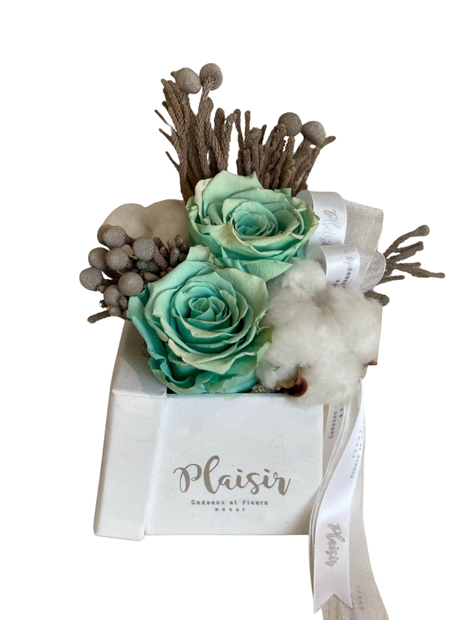 كان اللونان الأسود والأبيض دائمًا مزيجًا كلاسيكيًا من الألوان، وهذه الوردة السوداء الجميلة التي تدوم طويلًا في صندوق مخملي أبيض فاخر ستسعد أي متلقي. مناسبة لكل من الرجال والنساء، وتدوم صناديقنا الطويلة اللانهائية لأكثر من عام دون أي ماء أو عناية؛ فقط احفظها بعيدًا عن أشعة الشمس المباشرة واستمتع بها! مثالية لأي منزل أو مكتب.