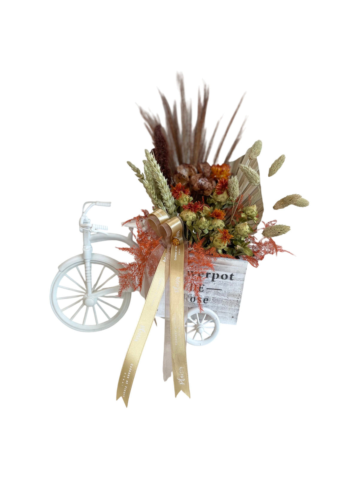 عربة دراجة رائعة وفريدة من نوعها مليئة بالزهور المجففة المختلطة لتزيين مساحتك. متعة للنظر وهدية جميلة تدوم طويلاً!!