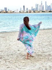 يُعد قفطان Plaisir Cadeaux et Fleurs تعريفًا للملابس الصيفية المريحة. إنه الفستان المثالي للارتداء من النهار إلى الليل والذي سينقلك من الشاطئ إلى الحفلة بسهولة. صُمم هذا الفستان الذي لا غنى عنه في خزانة الملابس بطبعة فخمة بألوان صيفية مشبعة، وسيضمن لك التميز عن الآخرين. مصنوع من قماش انسيابي، ويتميز بفتحة رقبة على شكل حرف V وأكمام بطول الكوع.
