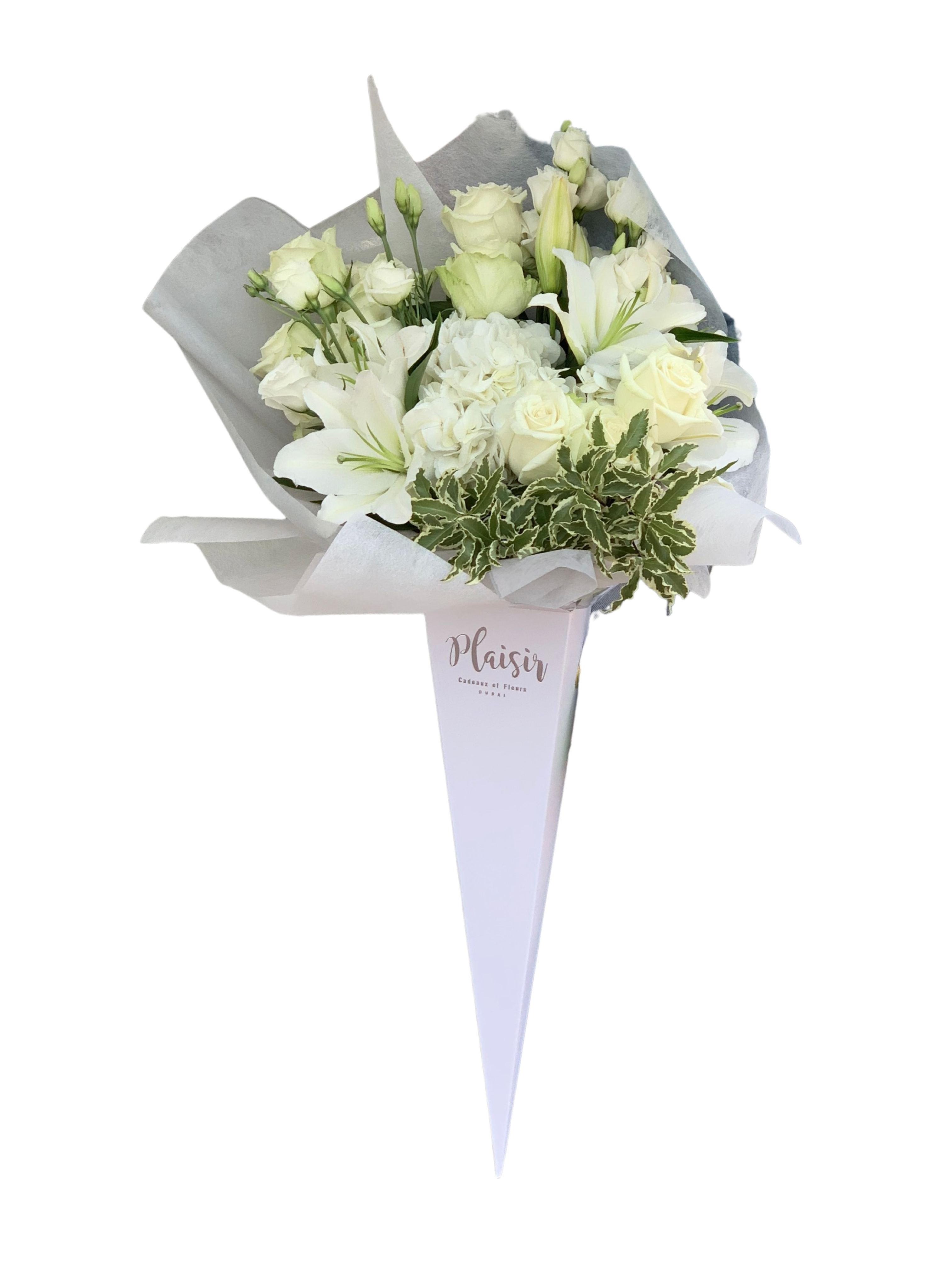 مجموعة من الأزهار الرائعة باللون الأبيض بالكامل مع إضافة الخضرة المستقرة في مخروط بلايزر الأبيض الفريد هي هدية مناسبة لجميع المناسبات، للرجال والنساء على حد سواء. عندما يكون العرض بنفس أهمية الهدية نفسها، ثق في بلايزر كادو إيه فلور لإبهار من يستقبلك بهذه الباقة المذهلة.