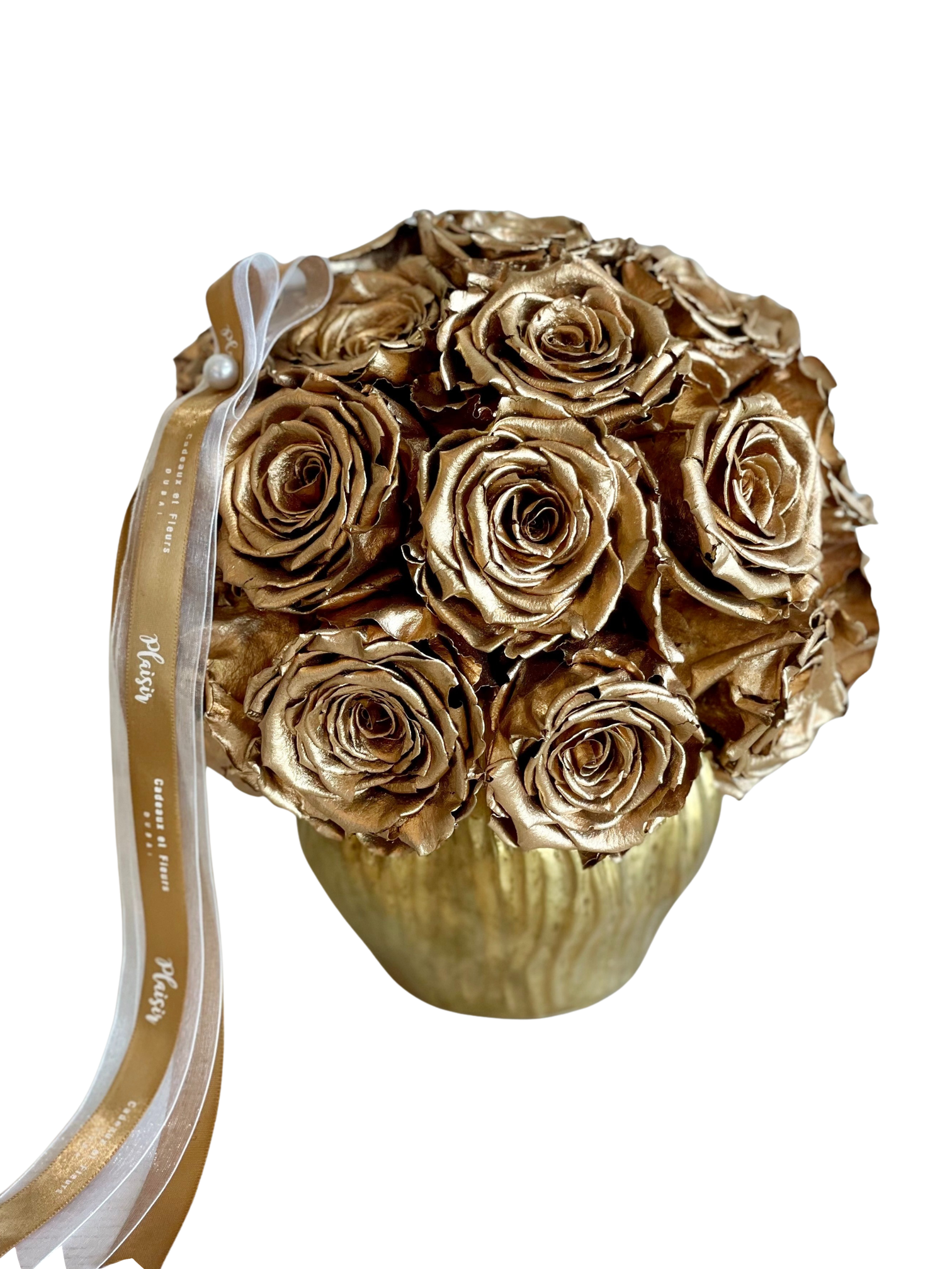 تعتبر الورود الذهبية الفريدة من نوعها جوهرة تاج Plaisir Cadeaux et Fleurs، وهي هدية مذهلة من المؤكد أنها ستبهر من سيستقبلها. تدوم هذه الباقة الفاخرة لأكثر من عامين دون أي ماء أو عناية، مما يجعلها مثالية لأي منزل أو مكتب.