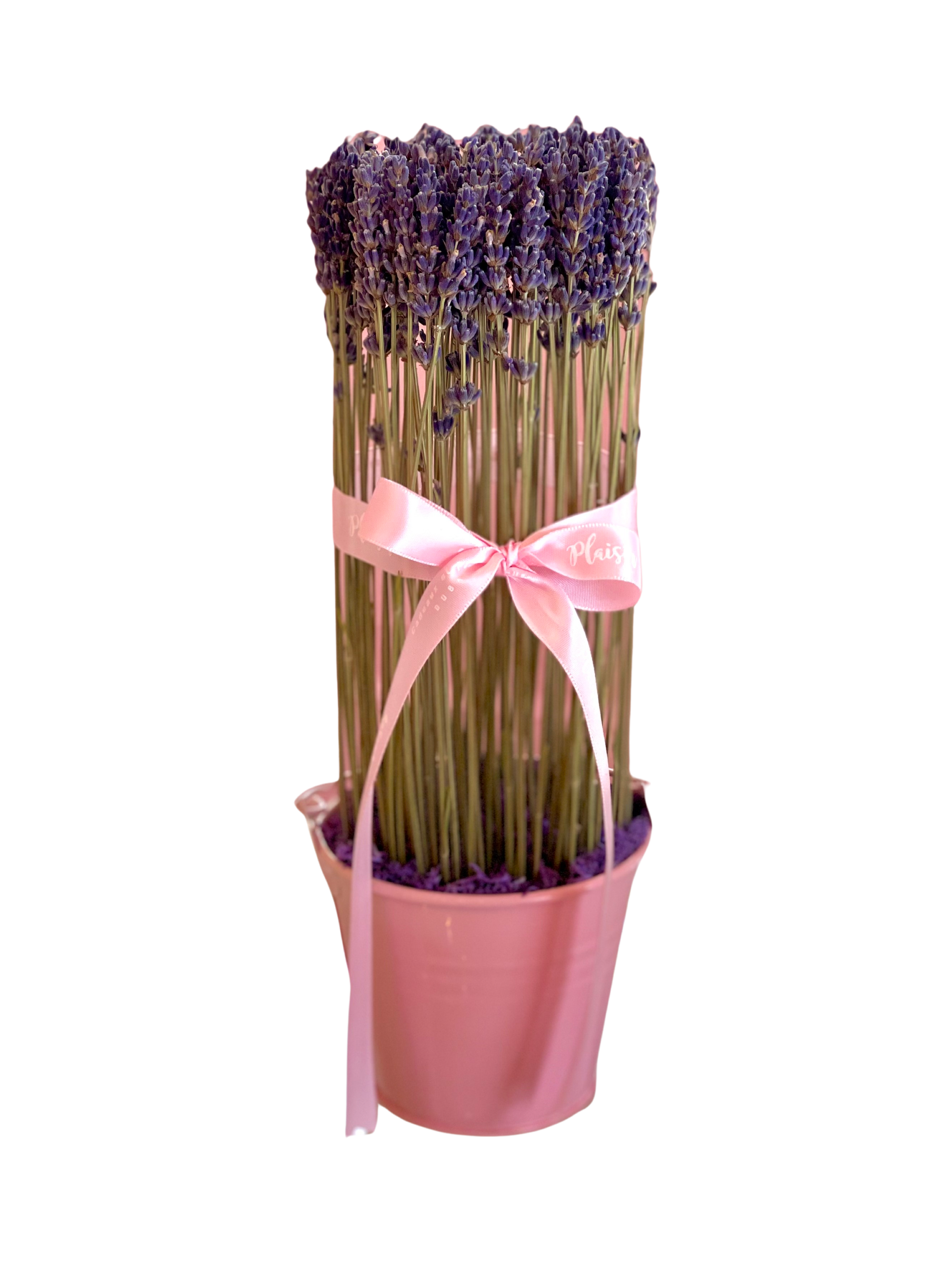 مجموعة زهور اللافندر الرائعة والفريدة من نوعها مصممة لتزيين مساحتك. إنها هدية رائعة للعينين وهدية جميلة تدوم طويلاً! يُعرف اللافندر بتأثيراته المهدئة والمريحة. أضف بعض الهدوء إلى يومك مع دلو اللافندر الرائع هذا! هدية مثالية لأي ديكور منزلي أو مكتبي.