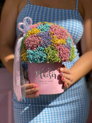 أرسل قوس قزح من الحب إلى من تحب. من المؤكد أن هذا الصندوق المخملي الفاخر المليء بزهور الجبسوفيلا الملونة بألوان قوس قزح سيجعل يوم أي شخص مليئًا بالبهجة! من الصعب ألا تبتسم في كل مرة تنظر فيها إلى هذا الصندوق! اجعل شخصًا مميزًا يبتسم اليوم مع صندوق قوس قزح من Plaisir Cadeaux et Fleurs!