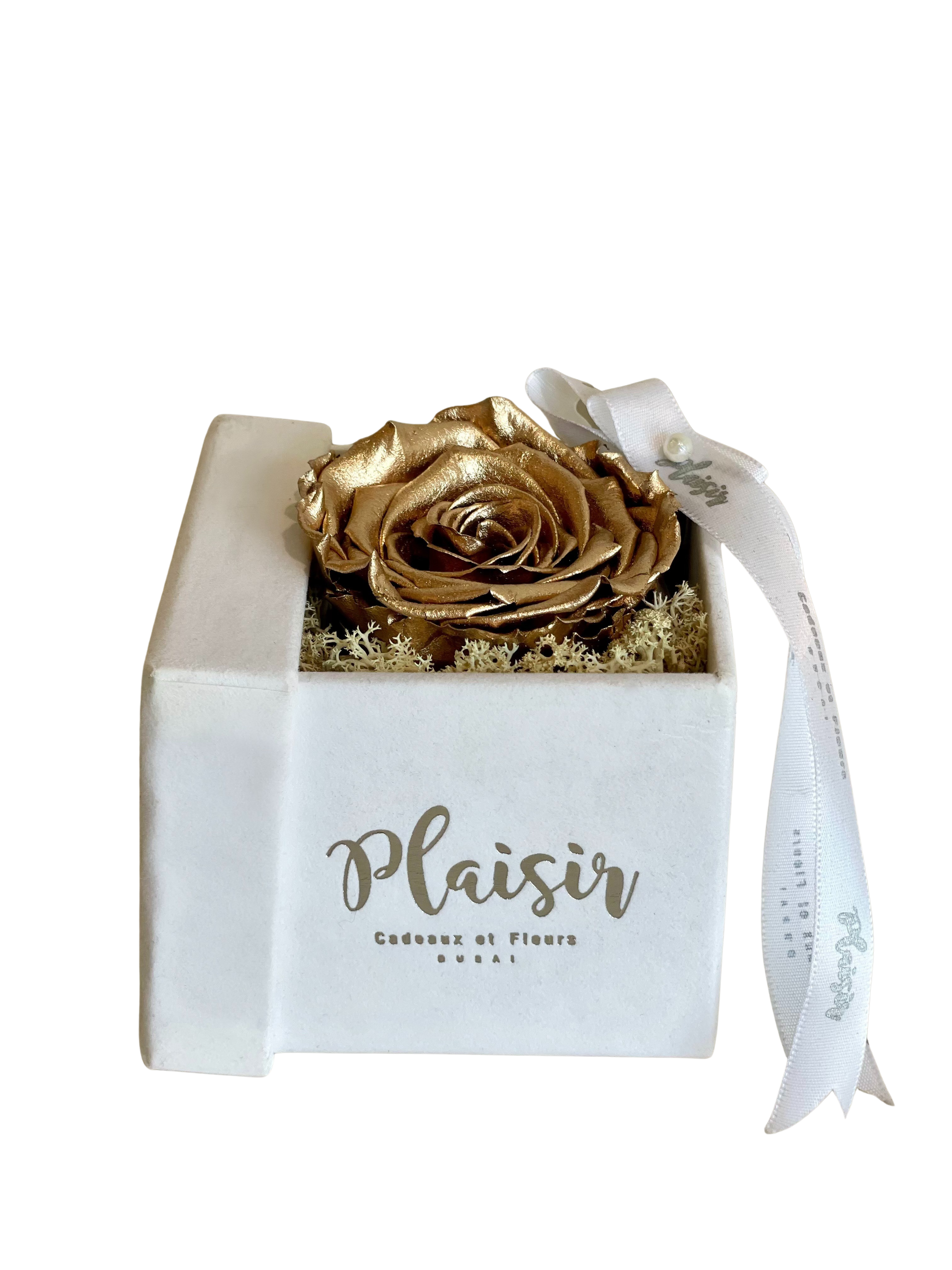 تعتبر علبة الورود الذهبية الفريدة من نوعها جوهرة تاج Plaisir Cadeaux et Fleurs، وهي هدية مذهلة من المؤكد أنها ستبهر من سيستقبلها. تدوم هذه الباقة الفاخرة لأكثر من عامين دون أي ماء أو عناية، وهي الطريقة المثالية لإظهار مدى اهتمامك.
