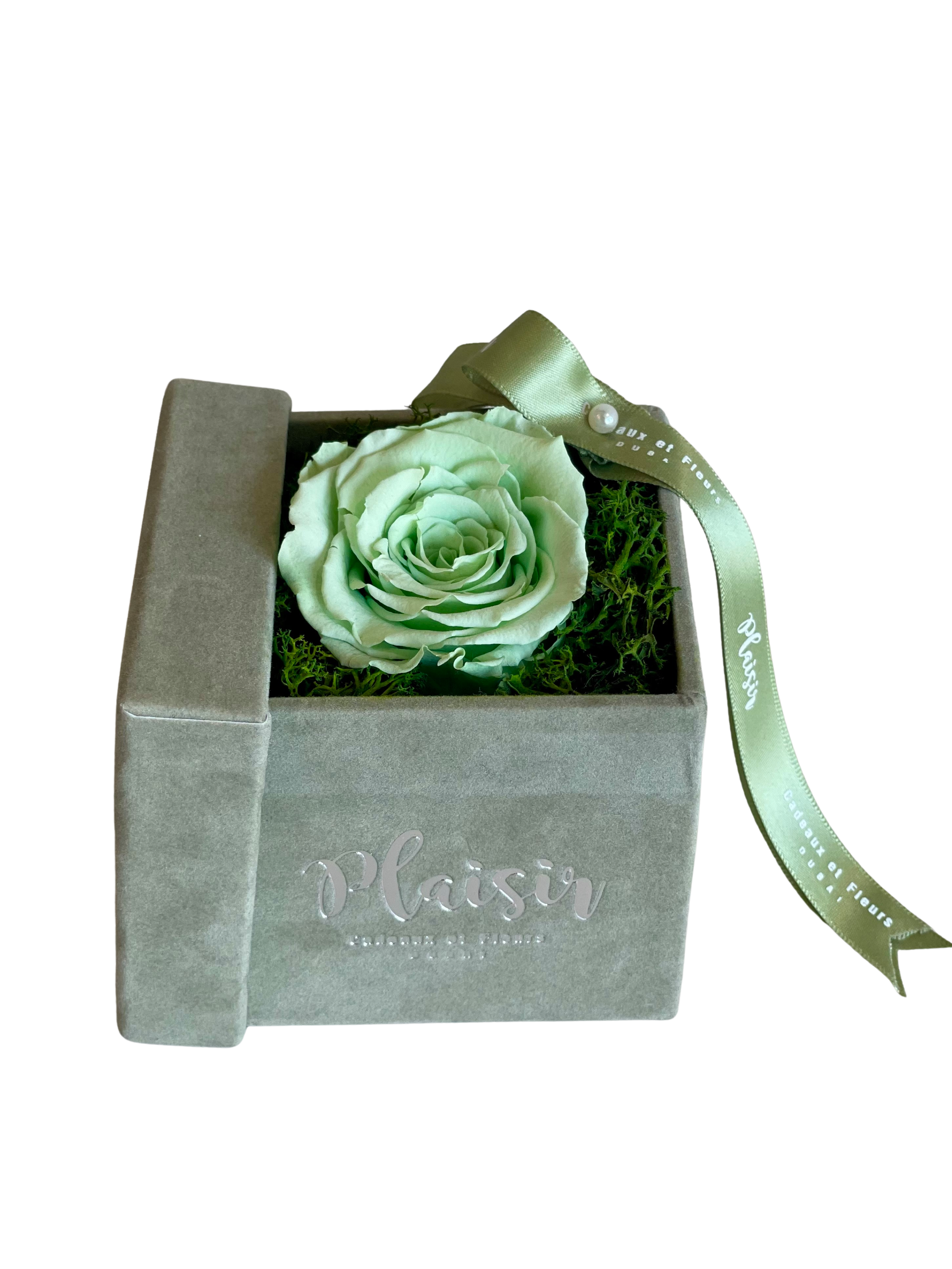 صندوق Petite Square Single Infinity من Plaisir Cadeaux et Fleurs هو هدية مثالية تستمر في العطاء. ستدوم هذه الوردة الخضراء الفريدة والمعروضة بشكل جميل في صندوق مخملي أخضر فاخر من Plaisir لأكثر من عام واحد، ولن تبهر من ستهديها فحسب، بل إنها أيضًا شهادة على ذوقك الأنيق. سواء كان ذلك على مكتبهم أو في المنزل، فمن المؤكد أنهم سيتذكرونك كل يوم.