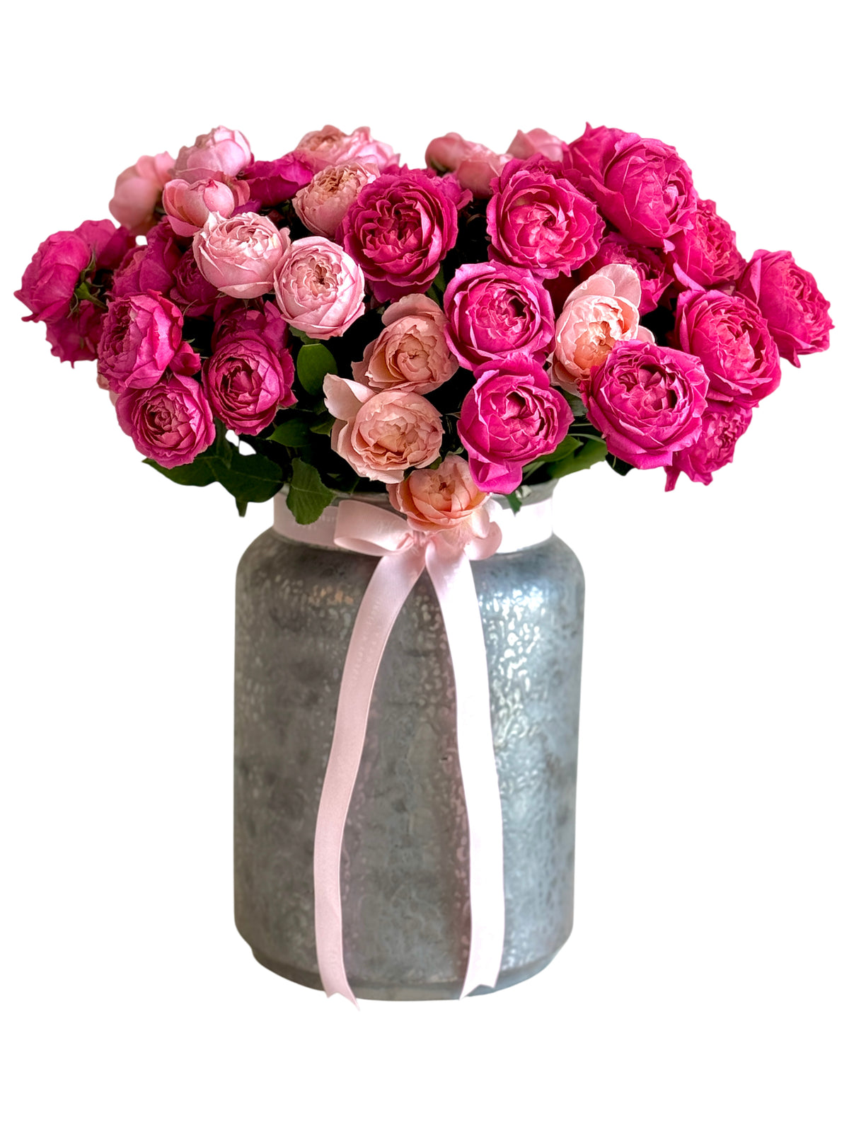 طريقة رائعة وأنيقة للتعبير عن مشاعرك لشخص مميز! سواء كانت تهنئة بعيد ميلاد أو ذكرى سنوية أو شكر أو تهنئة بمولود جديد أو ببساطة لمجرد الرغبة، فإن مجموعة مزهرية الورود الفاخرة الرائعة هذه الموجودة في مزهرية كبيرة أنيقة باللون الفضي الملكي ستجلب الابتسامات إلى كل من حولك!