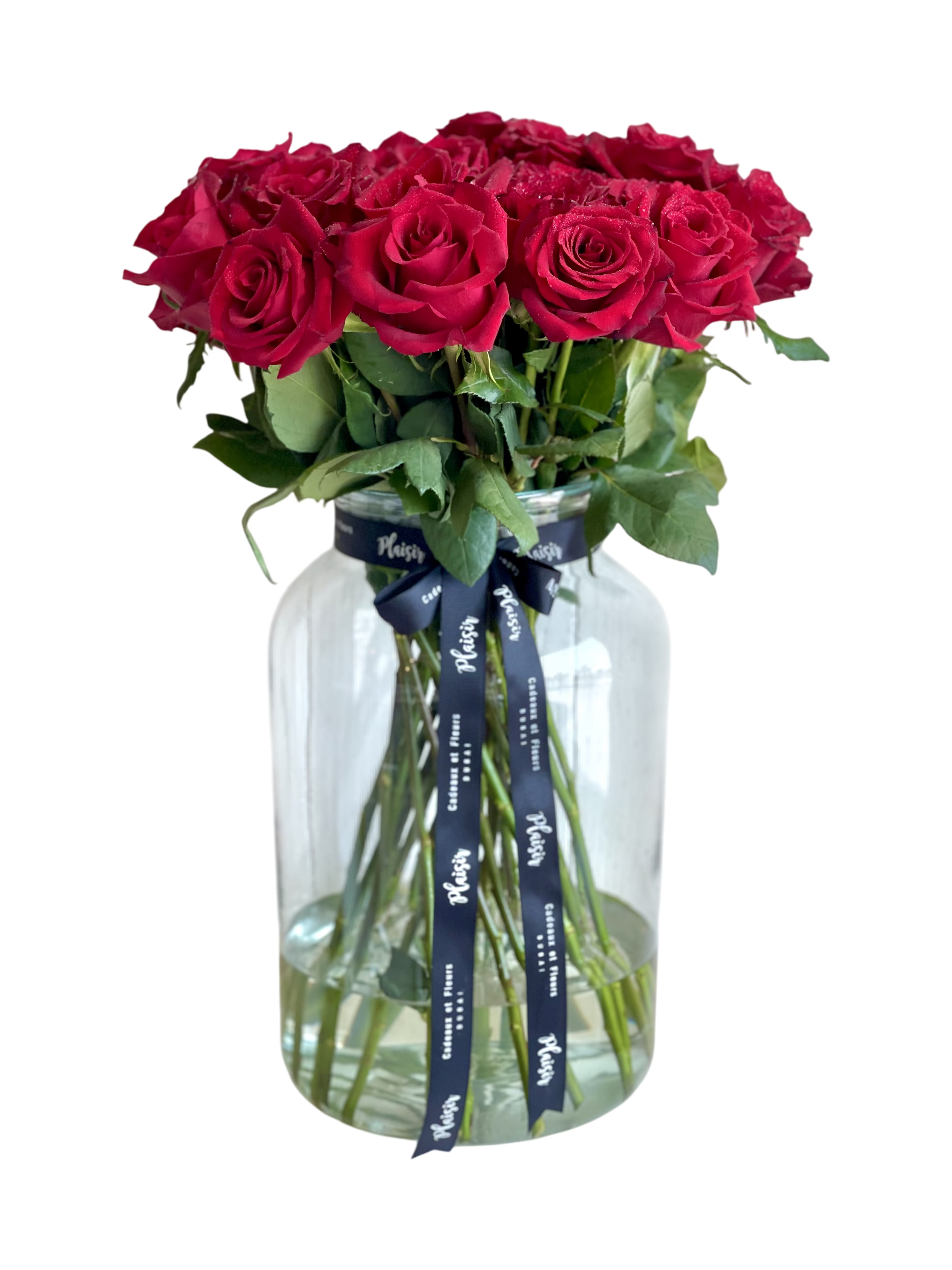 لا يوجد شيء أكثر جمالاً وتعبيراً من الورود الحمراء الطازجة الرائعة للتعبير عن حبك! هذه الباقة الموضوعة في مزهرية سورينتو الرائعة تضمن لك رسم البسمة على وجوه الجميع!
