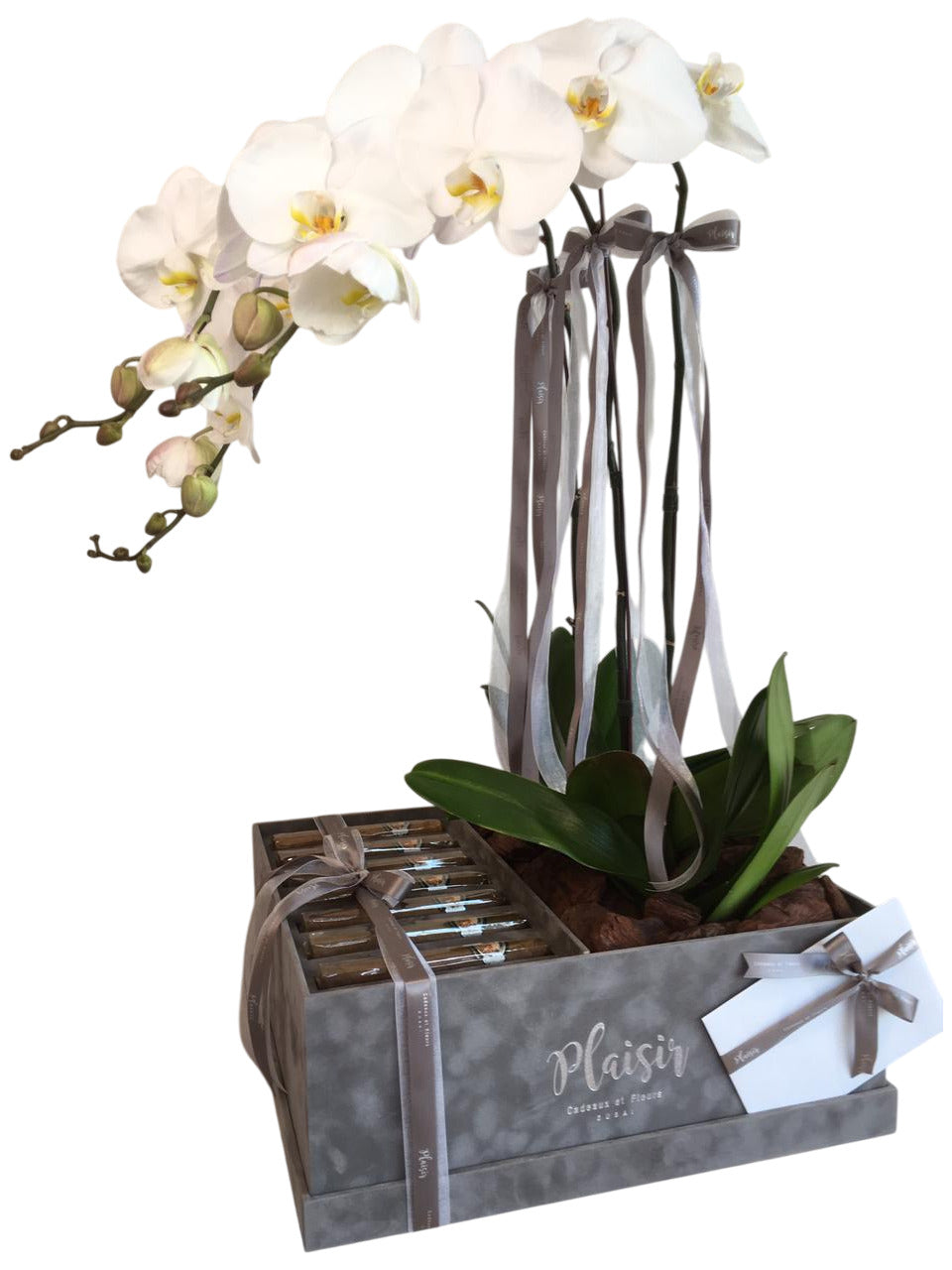 صندوق الهدايا الفاخر VIP الخاص بنا للرجال هو هدية مثالية للشركات أو هدية شكر أو هدية عيد ميلاد أو ذكرى سنوية. يتضمن صندوق VIP هذا: سبعة سيجار Louis Martinez بالإضافة إلى ثلاث نباتات أوركيد فاخرة محاطة برقائق الخشب الطبيعي ومزينة بـ صناديق مخملية مصنوعة يدويًا من Plaisir Cadeaux et Fleurs.