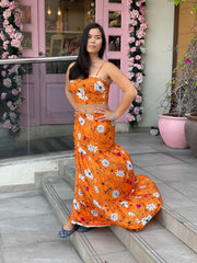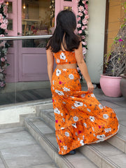 What could be happier than the colour orange? This beautifully feminine outfit with daisy motif, makes this gorgeous two piece set not only beautiful but also your most comfortable of summer outfits. Perfect for warm weather and all your daily excursions!
