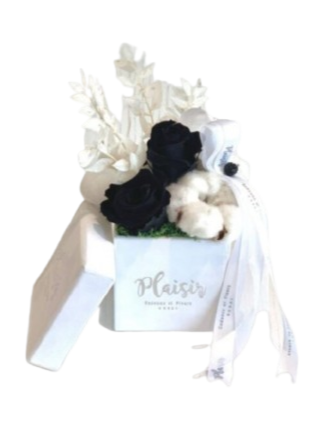 This unique and beautifully displayed double Tiffany forever rose arrangement in Plaisir's luxury White velvet box will not only wow your receiver, it is also a testament of your elegant taste.