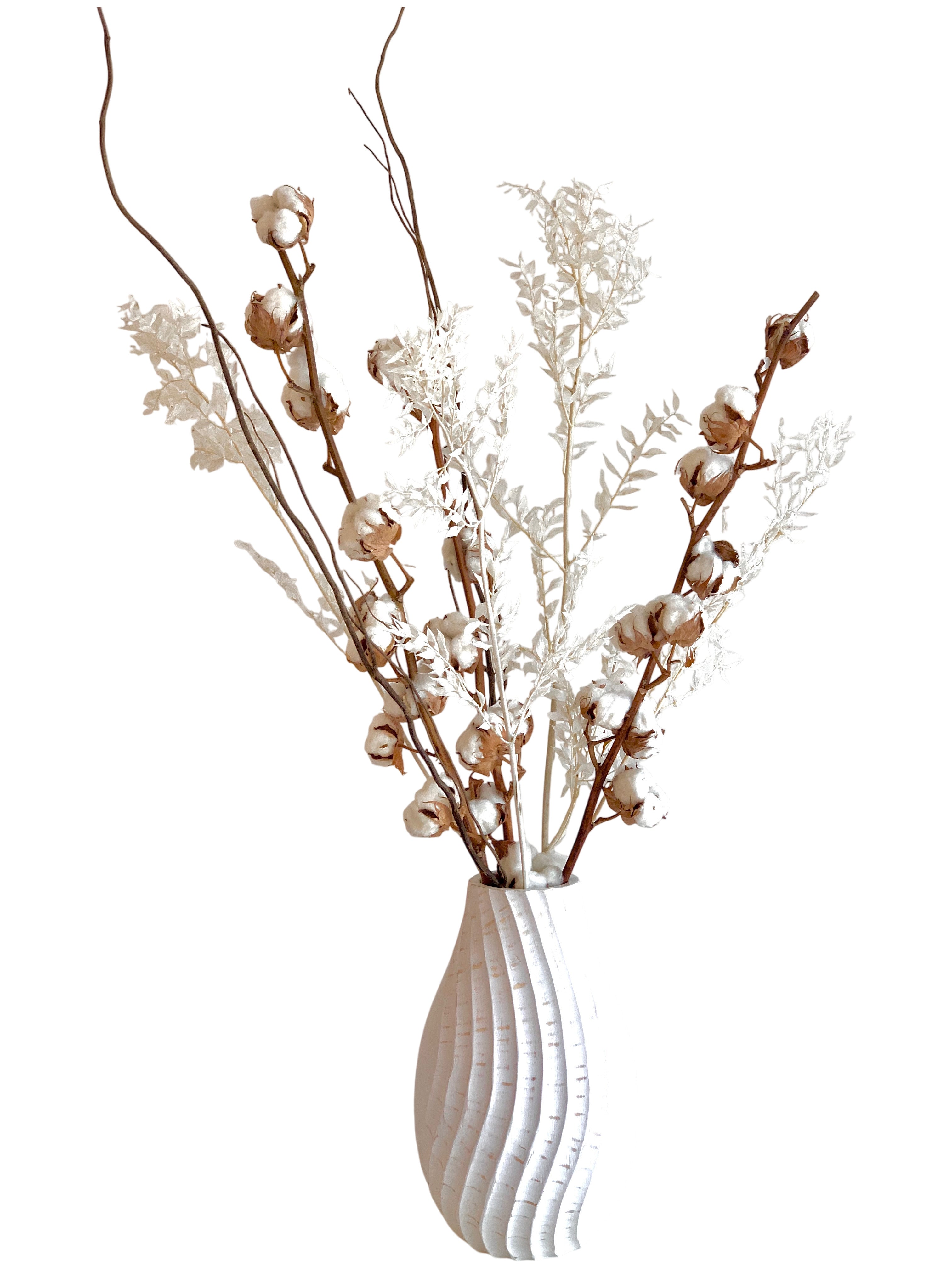 The vase, the cotton, the bleached ruscus and salix...all come together to make a beautiful arrangement for your home, office or to offer as a gift that would last forever!