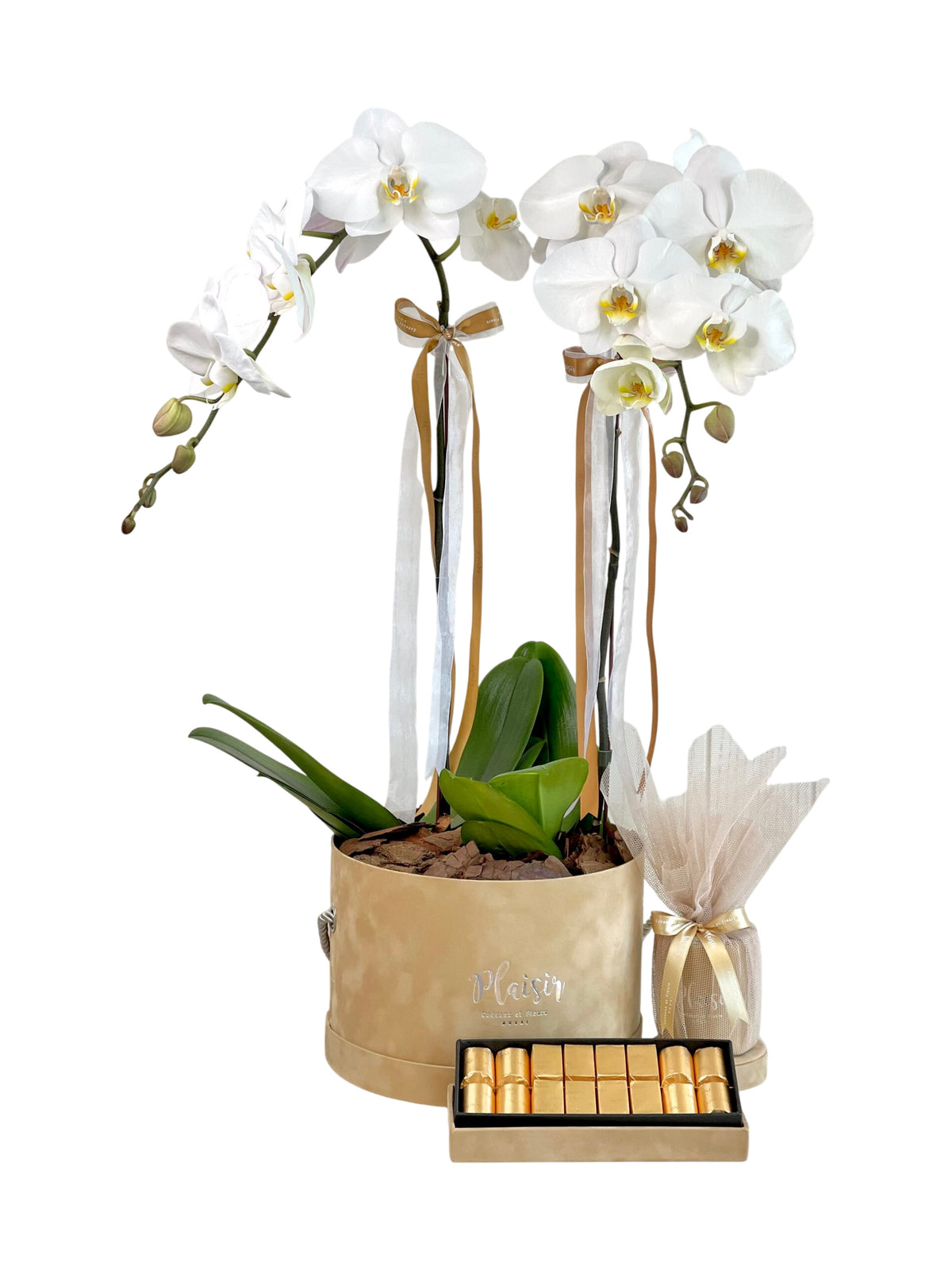 This gorgeous luxury giftset includes a stunning double orchid, delicious chocolates and our exclusive Plaisir candle in the same colour velvt. This set is sure to make anyone’s day truly special and leave them feeling loved and appreciated.