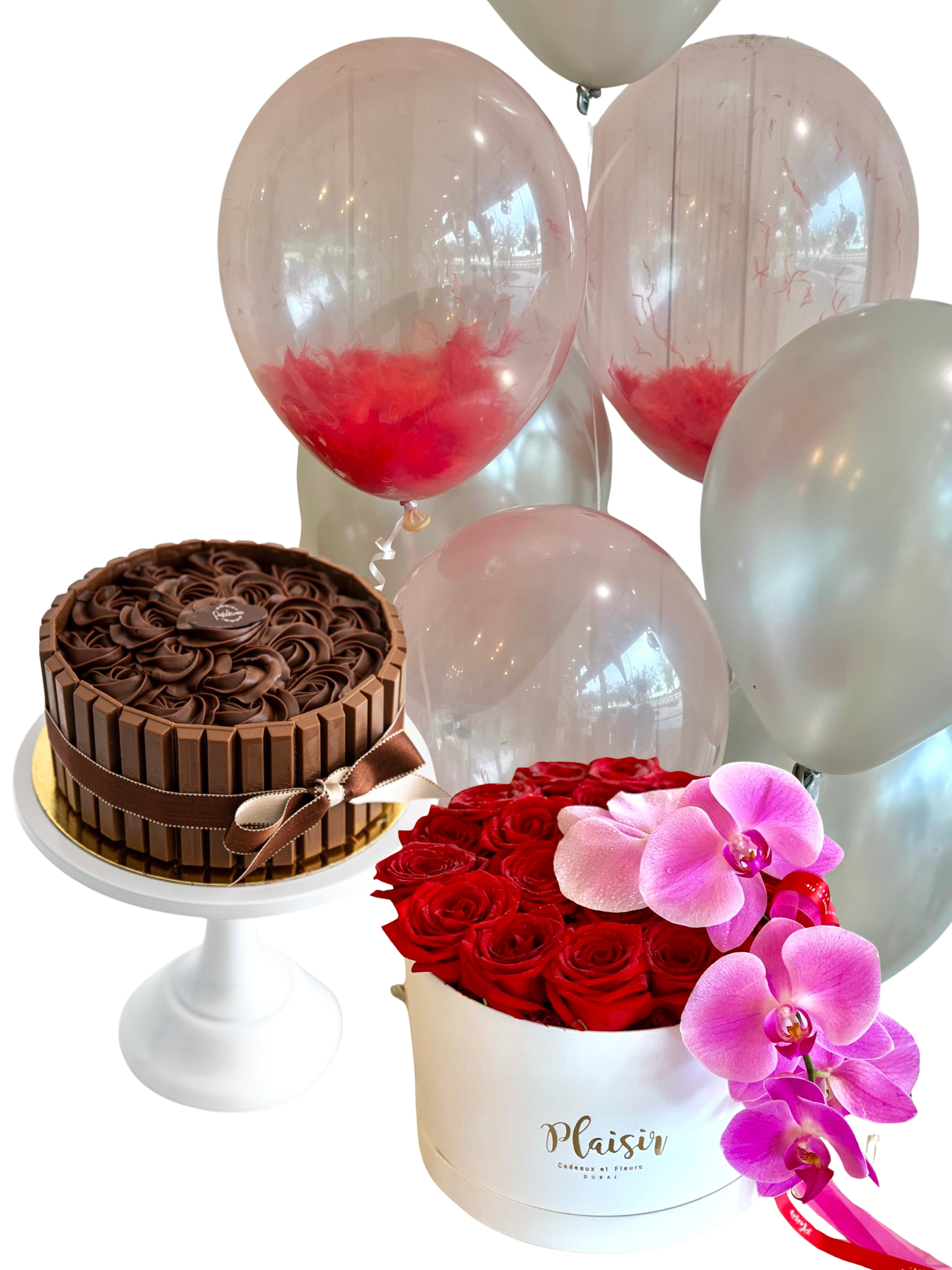 Team that up with some some luxurious red roses with orchid in our white velvet box and balloons to really mark the occasion in a special way. Let us bring that huge smile to your receiver's face!