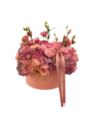Pink is the colour to every girl's heart, no matter what age. The message our Pink Boxes convey is one of happiness and kindness. It shows your receiver that your aim is to make her smile. This Plaisir Cadeaux et Fleurs' luxurious velvet Hatbox is home to a number of Pink blooms in a variety of light and dark shades of the same colour. Truly an arrangement that brings joy to the heart, decorated with silk & chiffon ribbons, Plaisir's pink hatbox oozes elegance.