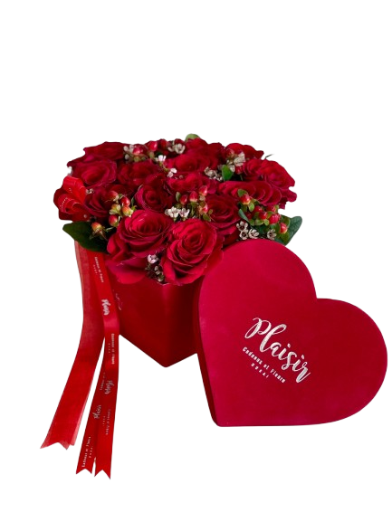 Plaisir Cadeaux et Fleurs' gorgeous and luxurious Velvet Heart-Shaped Box is filled with the highest quality roses decorated with a stunning orchid on top for that extra awe-inspiring look. The stunning velvet box is a beautiful keepsake once the flowers are no longer... Your receiver will not forget this touching gift. Send some LOVE to someone you love!