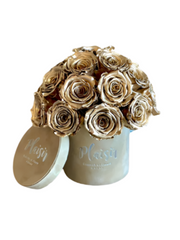 A crown jewel at Plaisir Cadeaux et Fleurs, our unique gold infinity roses are a stunning gift that is sure to wow your receiver. Lasting more than TWO years without any water or care, makes this luxurious vase arrangement perfect for any home or office.