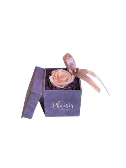 Plaisir Cadeaux et Fleurs' Petite Square Single Infinity box is a perfect gift that keeps on giving. Lasting for more than ONE YEAR without any water or care, this unique and beautifully displayed white forever rose in Plaisir's luxury lilac velvet box will not only wow your receiver, it is also a testament of your elegant taste. Be it on their office desk or at home, you are sure to be remembered every day.