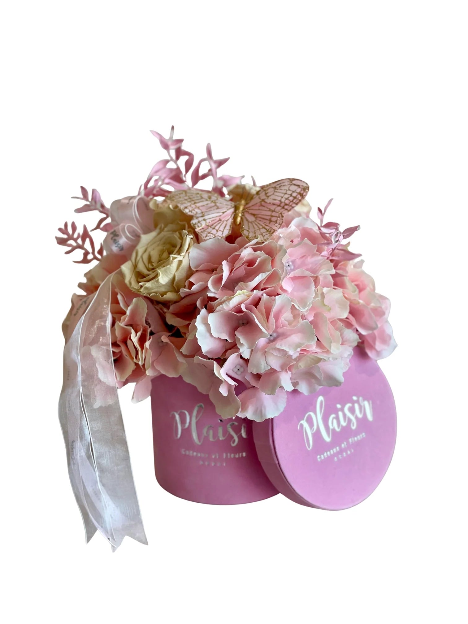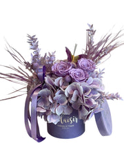 Plaisir Cadeaux et Fleurs' luxury longlife arrangements are the gift that keep on giving. This stunning arrangement in our Mini velvet box features infinity roses and a mix of dry and silk flowers. An elegant floral design that will last for years to come and requires no water or maintenance.