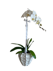 A gorgeous and luxurious single orchid, set in a uniquely designed white ceramic vase. A gift suitable for both ladies and gentlemen, home or office. Orchids are the most popular bloom to decorate any space!