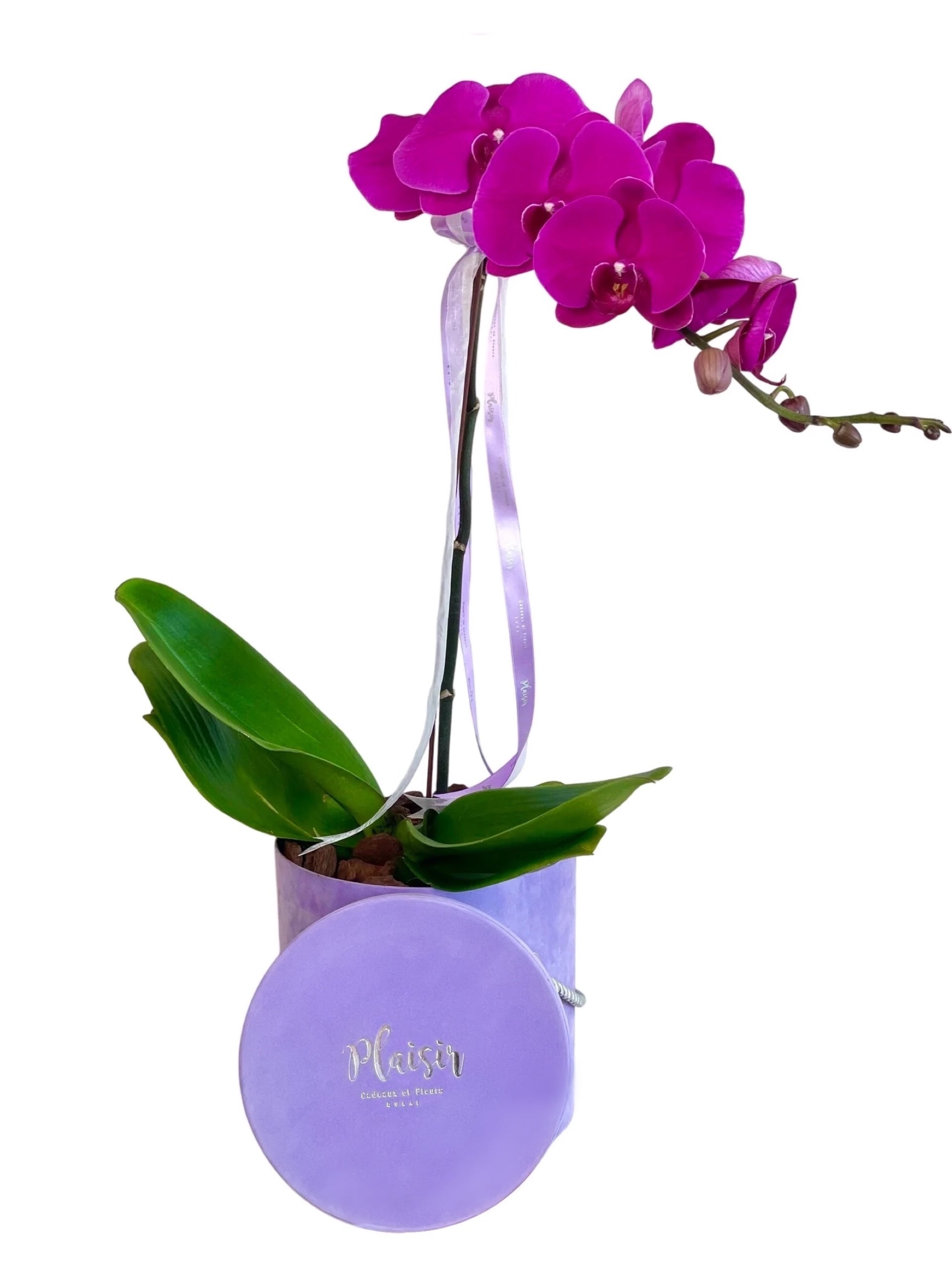 Nothing is more elegant than an orchid. Loved by all, this stunning creation of nature has become a favourite due to its beauty and longevity. Settled in Plaisir’s luxurious velvet box and decorated with silk ribbons, this gift will not only impress your receiver but also shows what elegant taste you have.