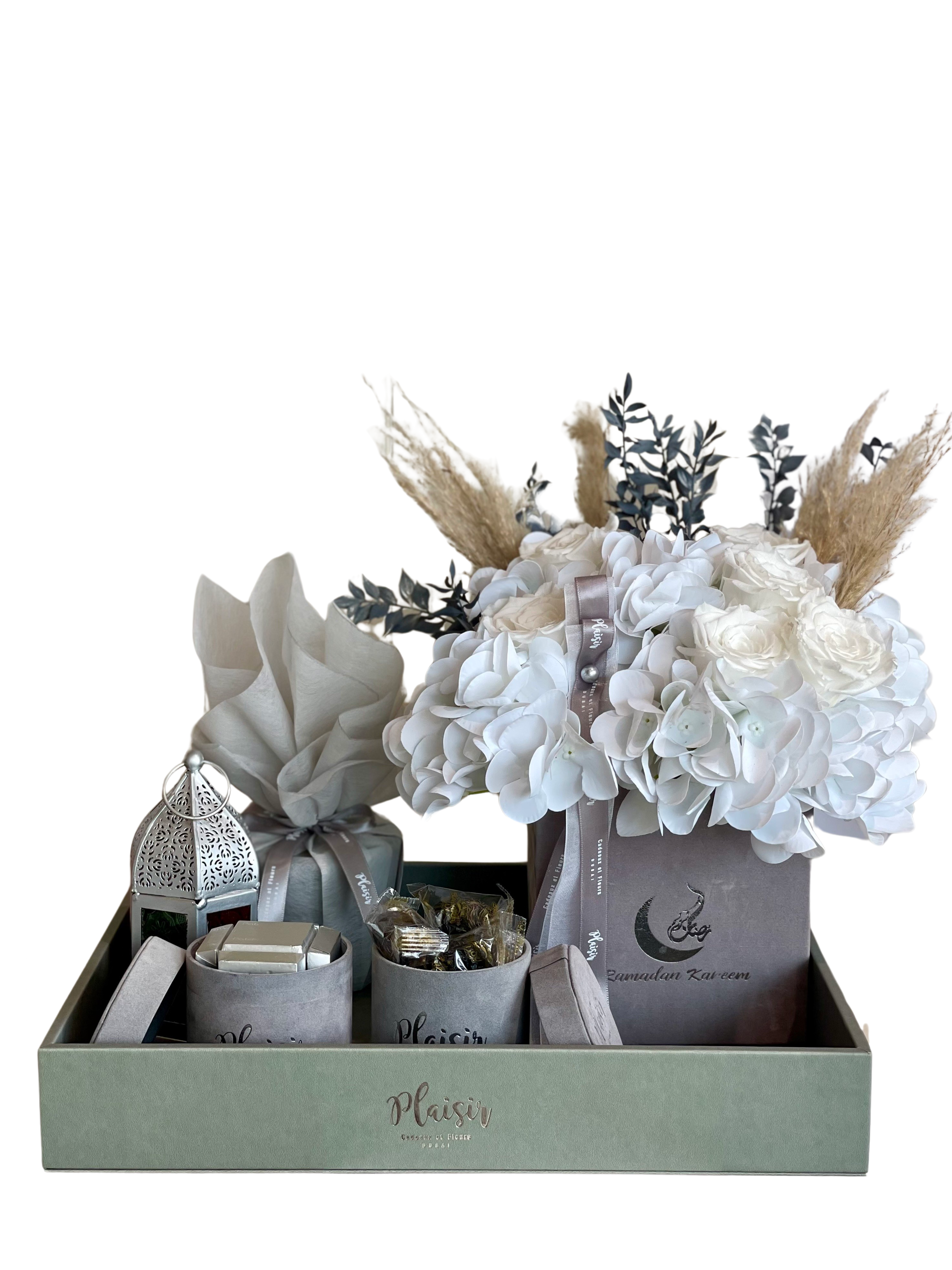A perfect Ramadan offering for this blessed month. This exquisite luxury gift tray includes: