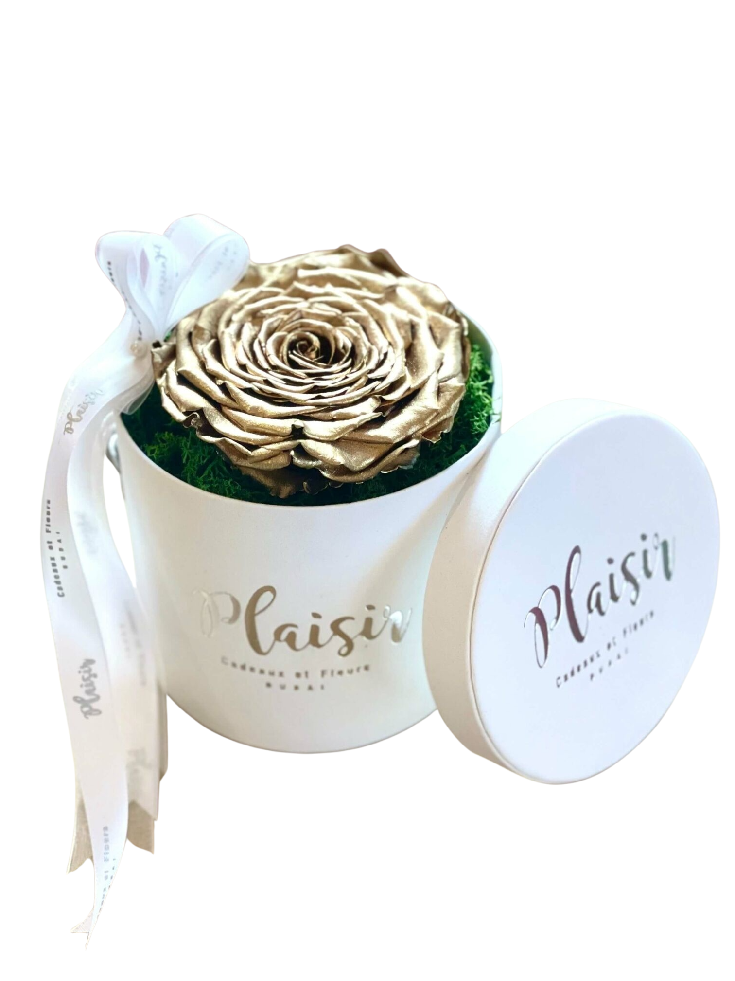A crown jewel at Plaisir Cadeaux et Fleurs, our unique gold infinity rose box is a stunning gift that is sure to wow your receiver. Lasting more than TWO YEARS without any water or care, this luxurious arrangement is the perfect way to show how much you care.