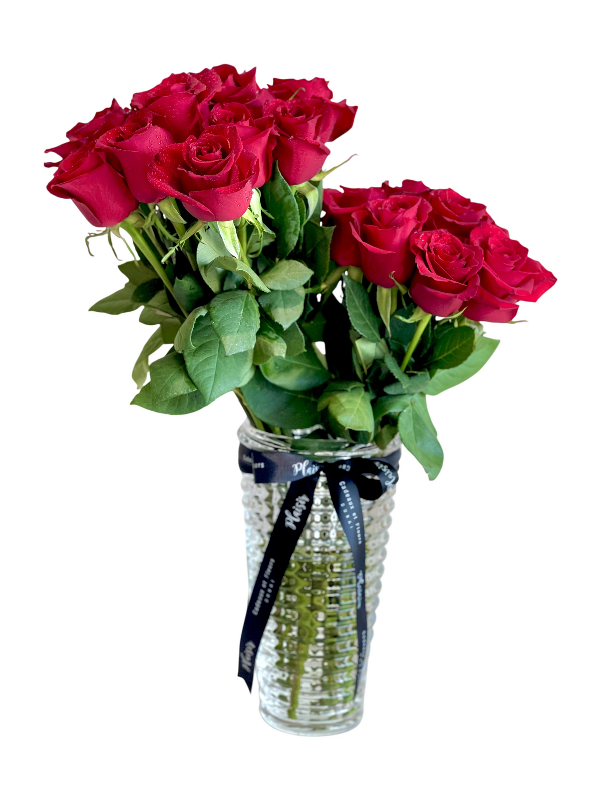 Two dozen Red Roses, a classic beauty in a stunning vase! This beautiful and unique red rose vase arrangement will make a thoughtful gift for your loved one. Suitable for both men and women, there is absolutely nothing more expressive for love than red roses, and this unique design will speak volumes on how original you are!